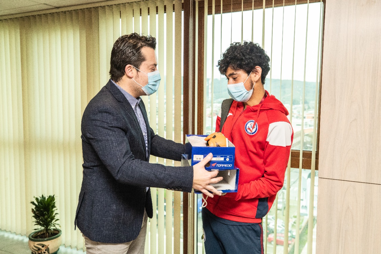 Alcalde Boris Chamorro se reúne en dependencias municipales con David Pérez, alumno de nuestro Liceo de Coronel, que sumó un oro y una plata para el Team Para Chile en el Grand Prix de para atletismo de México