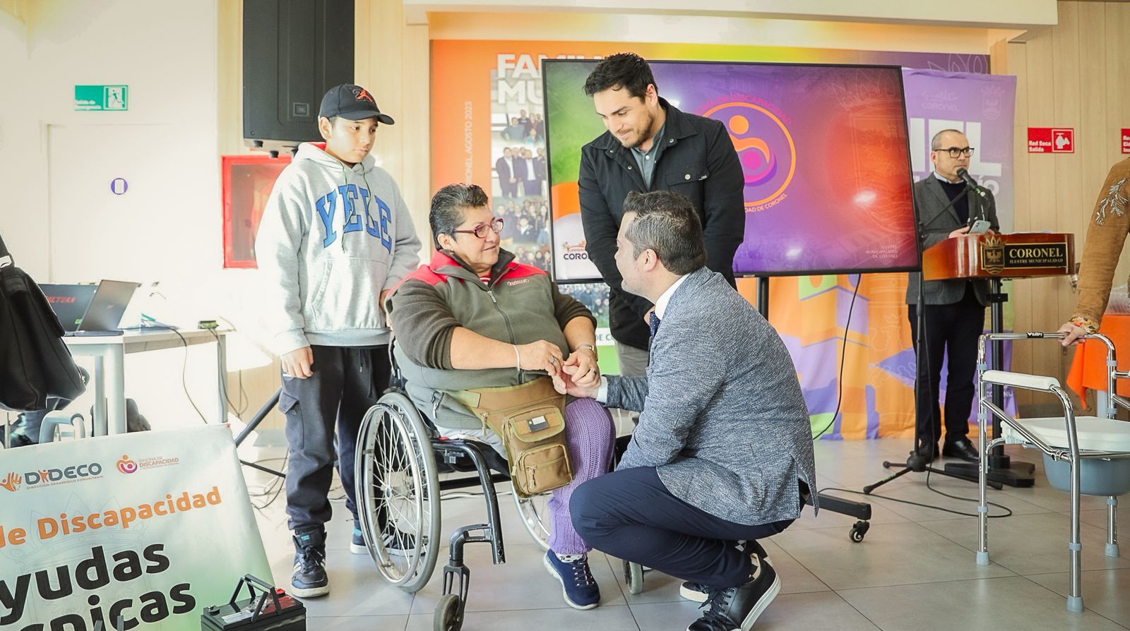 Durante la actividad, el alcalde Boris Chamorro destacó el valor social de este programa: “Este programa está en el centro, en el sello, en el corazón que mueve esta gestión municipal. El programa de enfermedades catastróficas llegó para quedarse y hoy está beneficiando a más de 500 familias de Coronel, con suplementos alimenticios, leche especial y ayudas técnicas que son fundamentales para la realidad de muchas familias de nuestra comuna”.